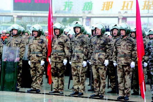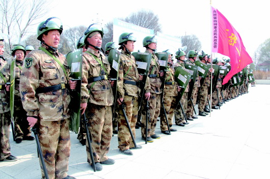 据了解,此次兵地联合举行反恐维稳誓师大会,旨在宣示兵地各族干部职工坚定不移贯彻社会稳定和长治久安的坚定决心,展示了各维稳力量忠诚勇敢、无坚不摧、敢打必胜的强大战斗力,彰显了兵团民兵政治过硬、素质过硬、纪律过硬、作风过硬的英雄本色,唱响了威武之师、钢铁之师、正义之师的英雄风采。(常驻记者 徐霆 通讯员 张浩英 董恒春 柳巧利 摄影报道)
