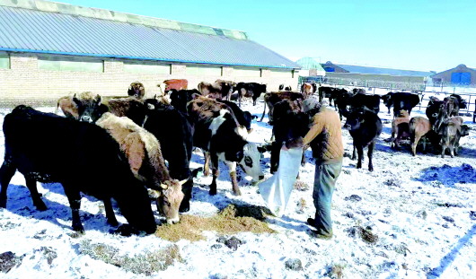 在昭苏康苏养殖专业合作社,技术员冒着零下15摄氏度的严寒实地查看了养殖合作社养殖情况,为300头生产母牛做了B超检测,为350头牛进行了免疫检查,详细了解了牛的膘情、牛场饲养管理等情况,并对牛的繁育、疫病防控、人工授精、养殖相关工作进行了指导,现场帮助合作社解决养殖过程中遇到的问题。“经过创锦牧业公司技术人员实地指导,学到了不少东西,今年我对发展养殖业更有信心了。”康苏养殖合作社负责人刘振宇说道。