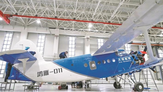 在天域航通大型无人机和通航飞机生产基地,一台国产鸿雁(HY100)大型无人机整装待发(资料图片)。2025年,八师石河子市固定资产投资增速预计将达到15%以上,其中,制造业增速预计将达到30%以上。 兵团日报全媒体记者 陈洋 摄