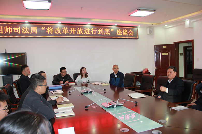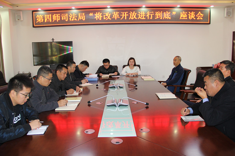 2018年10月24日,第四师司法局举办“将改革开放进行到底”座谈会,局机关18名干警工作人员参加。