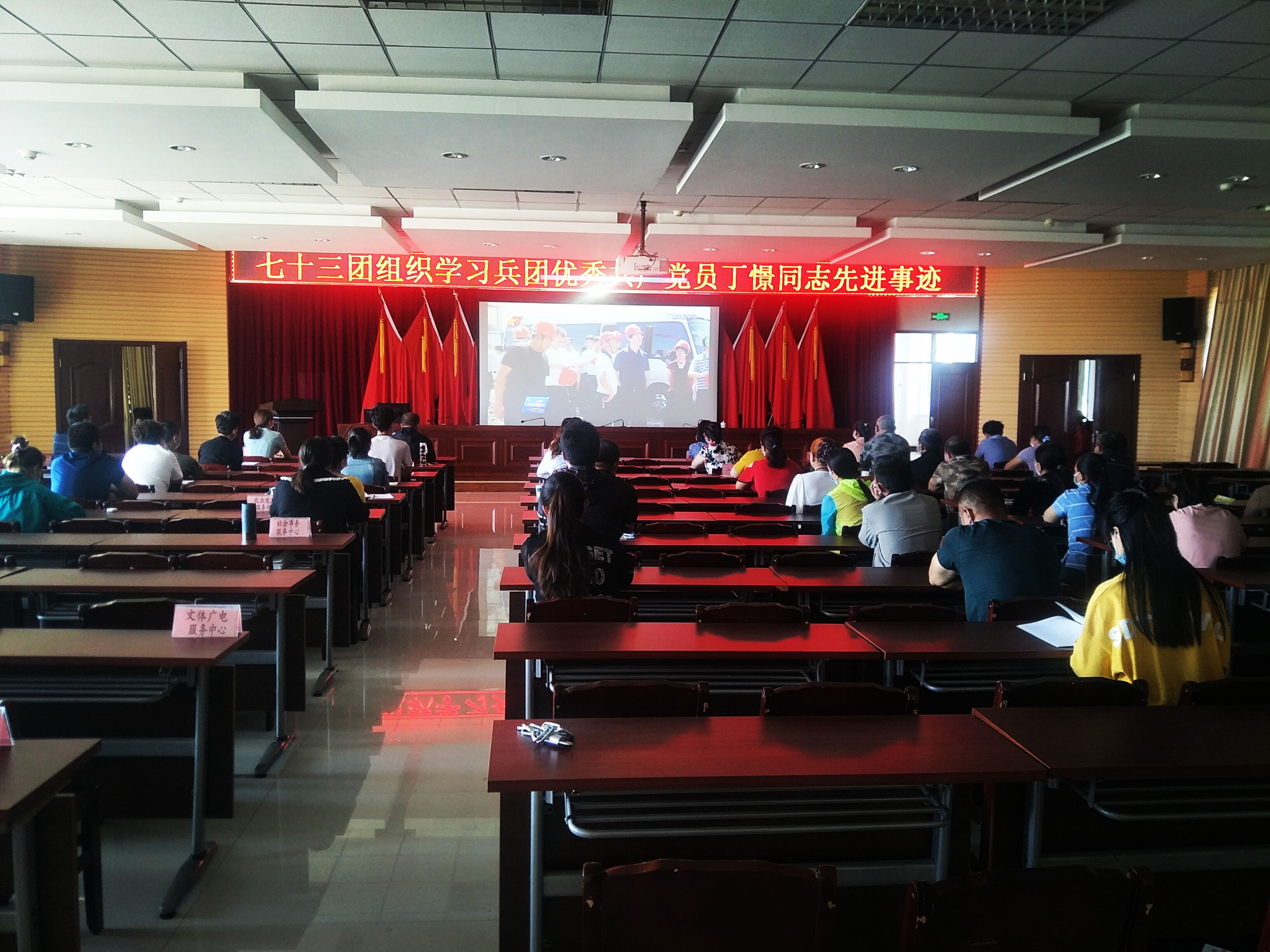 6月20日,七十三团在综合楼六楼会议室组织学习了丁憬同志先进事迹,来自来自团场机关、事业单位、连队、社区、工业园区、学校、医院的100余名党员干部、职工群众参加了学习。