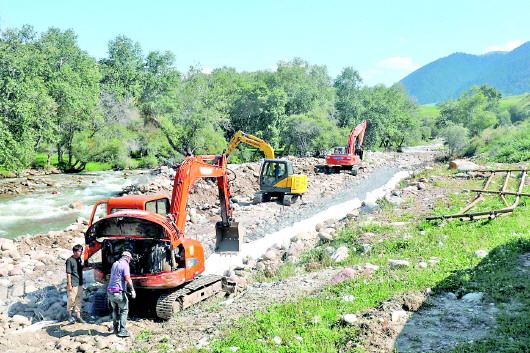 8月26日,在七十八团五连库什台河护岸工程项目施工现场,几台大型机车正井然有序挖运着砂石,一派繁忙的劳动景象。库什台河护岸工程是师市阔克苏河防洪治理工程项目的一部分,护岸长度2620米,计划9月15日完工。