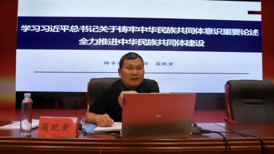培训中,师市党委统战部常务副部长蔺眈黉围绕铸牢中华民族共同体意识主题,结合自身工作实际,通过案例分析,系统讲解了中华民族共同体的鲜明特征和本质属性。他结合大量史实,生动阐述了中华民族共同体形成发展的根脉、魂脉与历史过程,对中华民族共同体意识的基本内涵进行了全面解读。授课既有理论高度,又有实践深度,让参训人员对铸牢中华民族共同体意识的重要意义有了更深刻地理解。