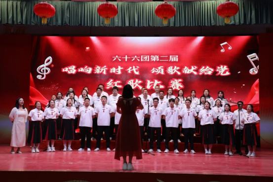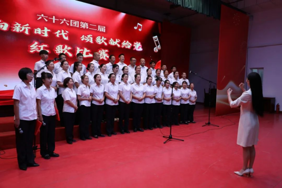 本次比赛主题鲜明,激情澎湃。各参赛队首先深情演唱了固定曲目——六十六团团歌《光荣啊!六十六团》,表达对团场的深厚情感。随后,各队纷纷献上精心挑选的自选曲目,《没有共产党就没有新中国》《祖国不会忘记》《强军战歌》《共筑中国梦》《篇章》《新疆兵团进行曲》《走向复兴》等一首首经典红歌轮番唱响。各参赛队精神饱满、队列整齐、歌声嘹亮,将经典红歌演绎得或深情婉转,或气势磅礴,充分展现了六十六团干部职工群众良好的精神风貌和炽热的爱党爱国情怀。