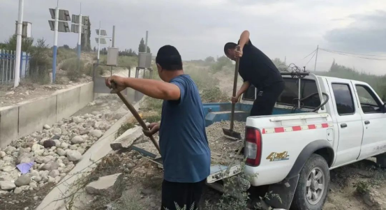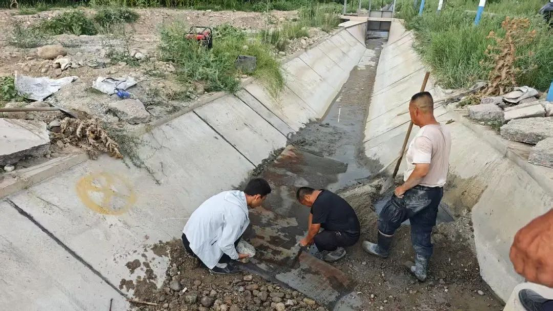 为保障连队农业生产有序开展,六连党支部迅速行动,党支部副书记协同专业人员实地勘察,制定维修方案。维修现场,六连“两委”成员、配水员和泵房管理人员分工协作,对渠水口上游加高,确保水流顺利引入。现场调配建材,清理干渠杂物,高效有序。