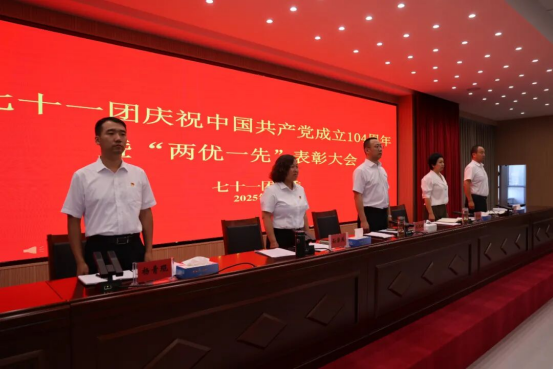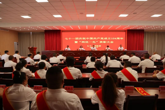 7月4日,七十一团召开庆祝中国共产党成立104周年暨“两优一先”表彰大会,回顾党的光辉历程,表彰先进典型,动员全团各级党组织和广大党员以更加昂扬的姿态投身团场发展建设。团党委书记、政委史化鹏出席会议并讲话。