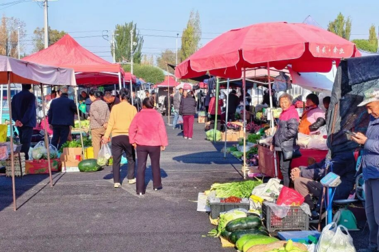 10月11日,正值七十三团拜什墩社区农贸市场巴扎日。往日尘土飞扬的砂石地面已不见踪影,取而代之的是平整宽阔的柏油场地。来自团场连队和地方乡村的职工群众、村民纷纷在此设摊摆点,叫卖声、询价声、欢笑声此起彼伏,各类商品琳琅满目,人来人往,一派繁荣热闹景象,充满了浓郁的“烟火气”。这个曾经让职工群众“晴天一身土,雨天两脚泥”的农贸市场,如今已成为环境整洁、经营有序、人流汇聚的惠民新平台。