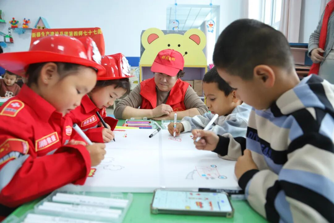 活动伊始,在七十七团幼儿园内,孩子们怀揣着对消防员叔叔的敬意,化身为“安全小使者”,亲手制作起爱心礼物。他们用稚嫩的笔触描绘出安全用火用电的场景,用五彩的彩泥捏出插座、电器和消防器材,将“生命至上”的主题融入一件件充满童真的作品中,每一份礼物都承载着孩子们对消防安全的理解与对“火焰蓝”的深深谢意。