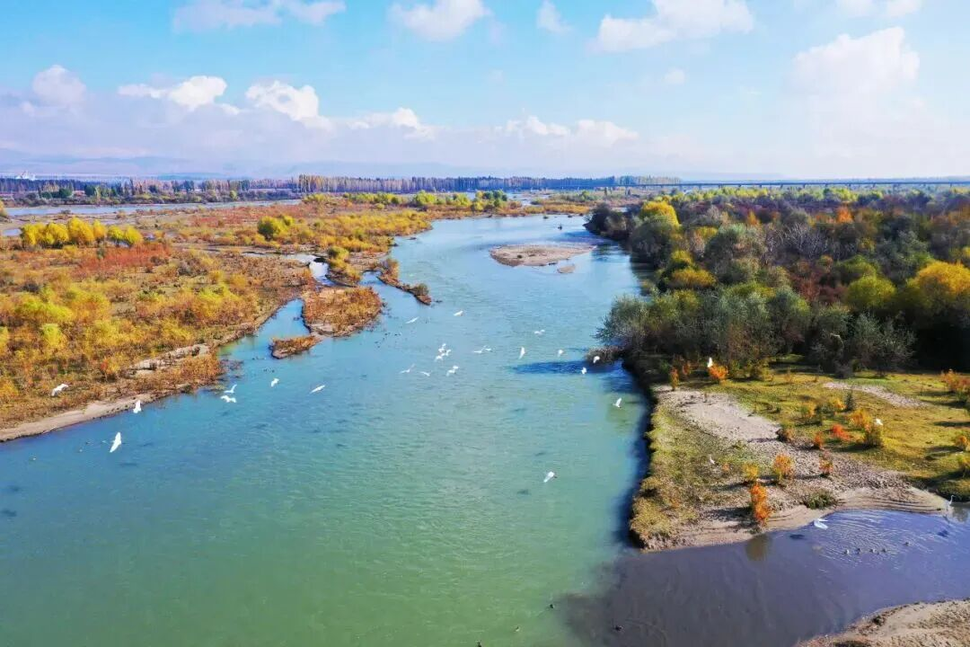 初冬时节,伊犁河七十三团河段水清岸净,成群的野鸭与白鹭在此栖息游弋,构成一幅和谐灵动的生态画卷。这一景象,正是团场全面落实河湖长制、持续推进水生态环境治理的生动体现。