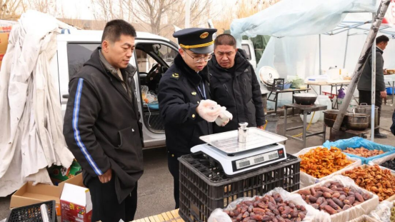 作为群众采购肉类、年货的主要场所,巴扎市场节日期间交易集中、人流量大,食品安全责任突出。本次检查以生鲜肉类、节日热销食品等为重点,对经营户的营业执照、从业人员健康证明等资质进行核验,严格检查进货票据、检疫证明等溯源管理情况,并查看食品贮存条件、生熟分区及明码标价落实情况。执法人员还对市场内在用计量器具进行了校验,经检查不存在商品来源不明、质量不符、计量不准等违法违规行为。