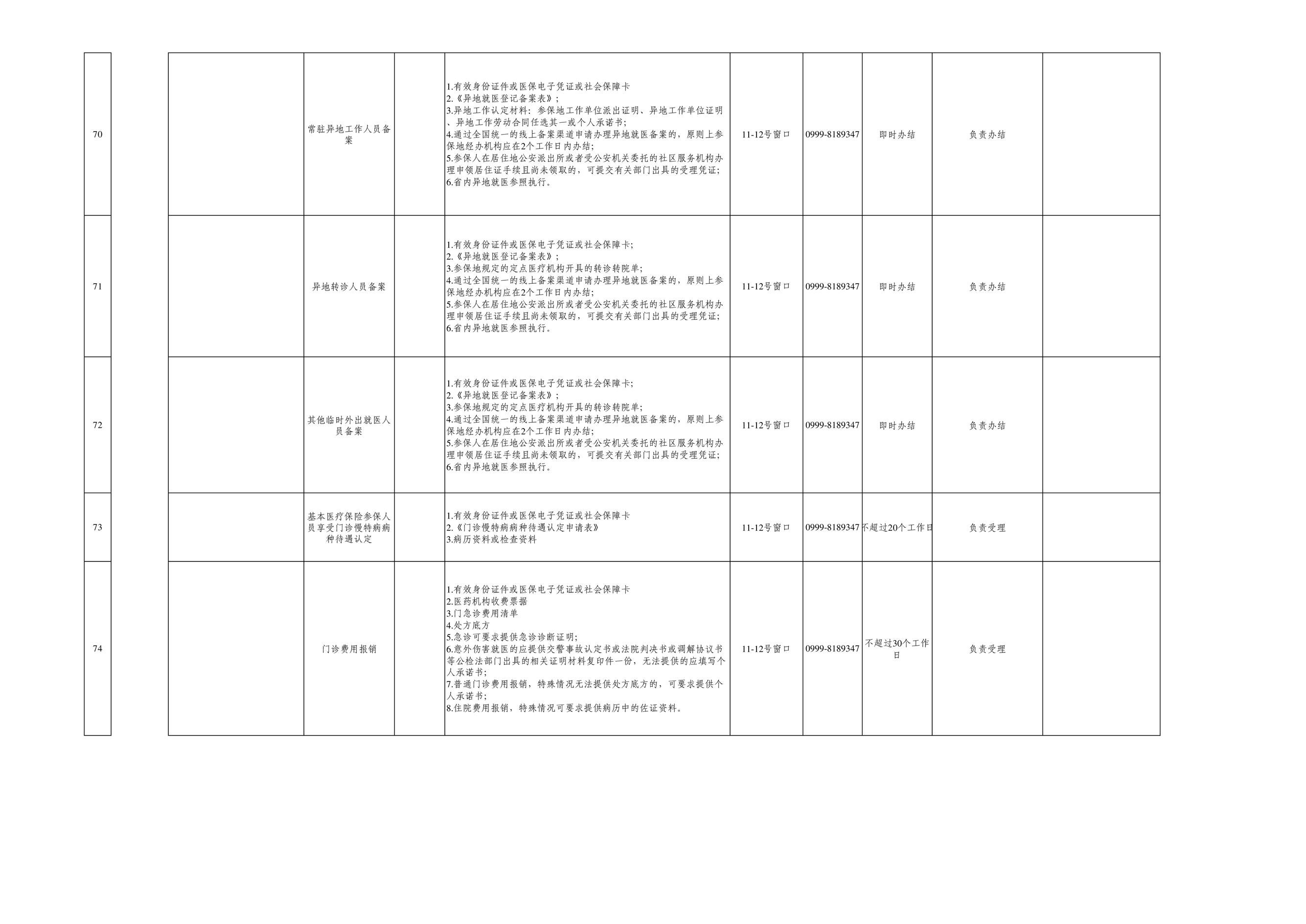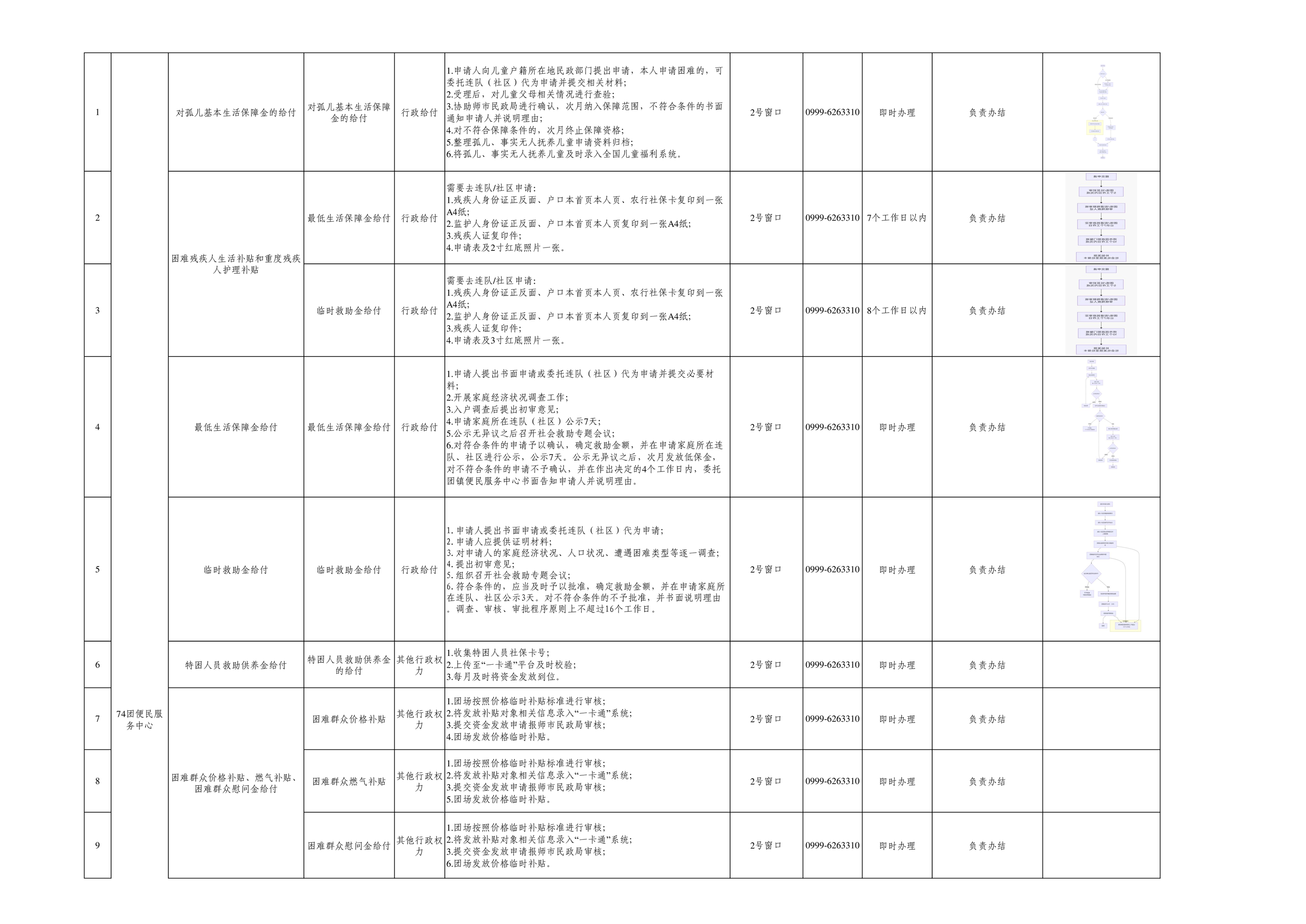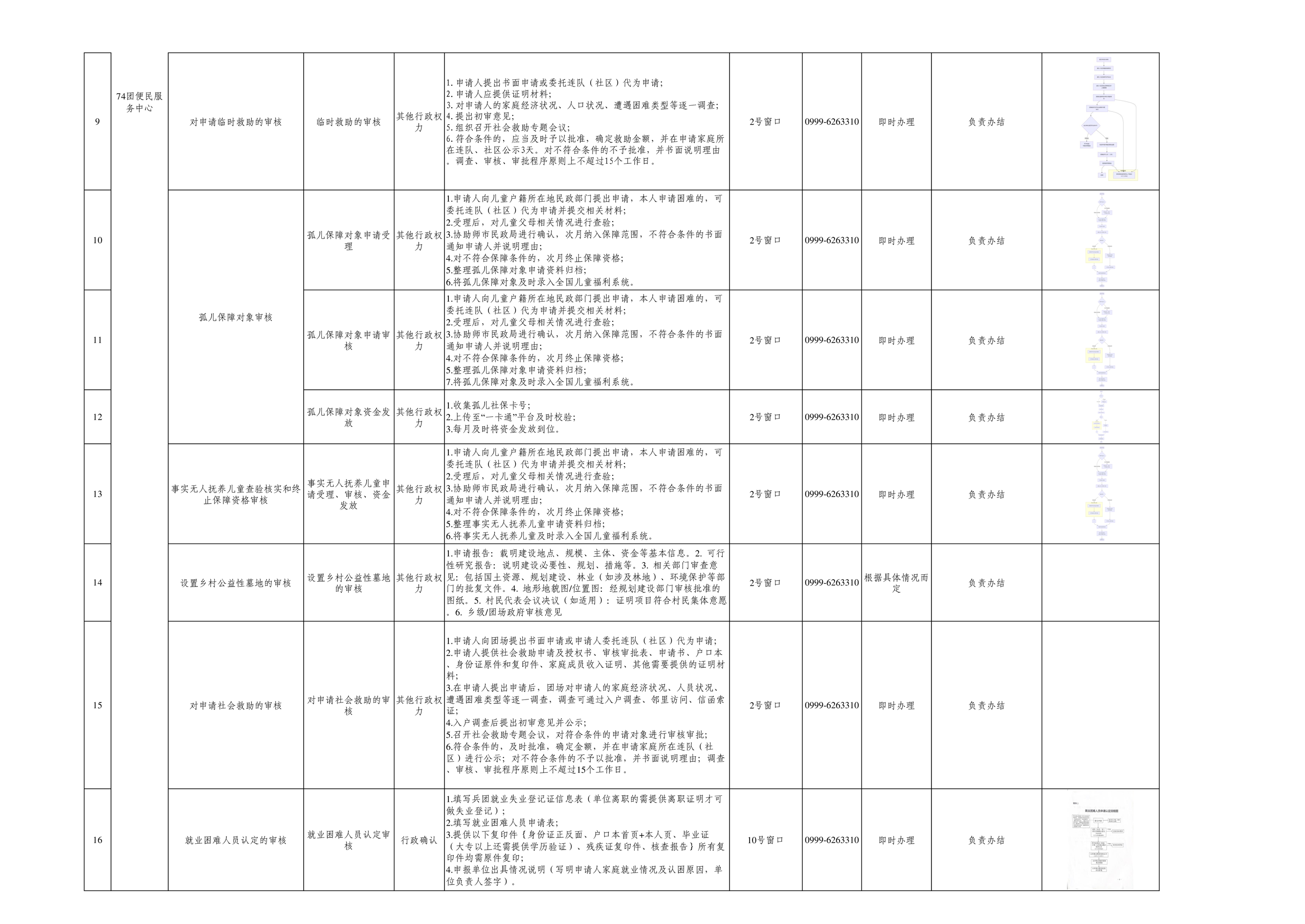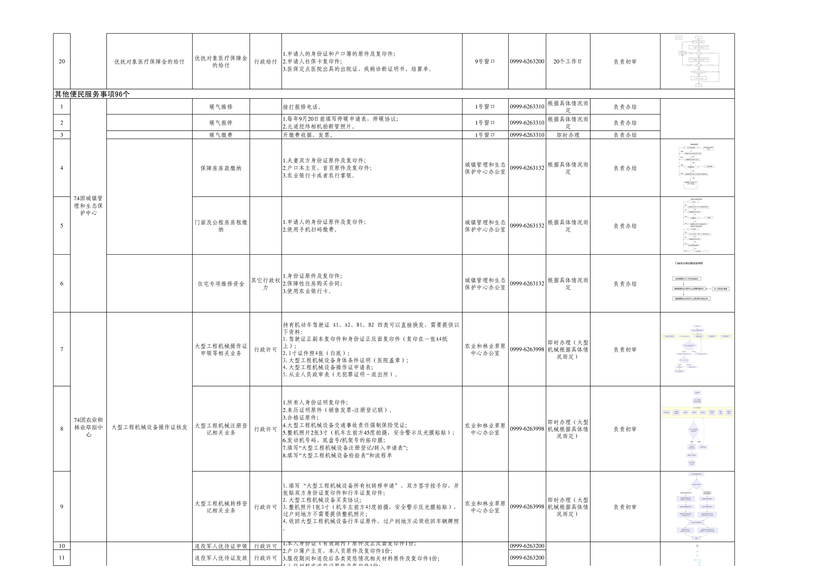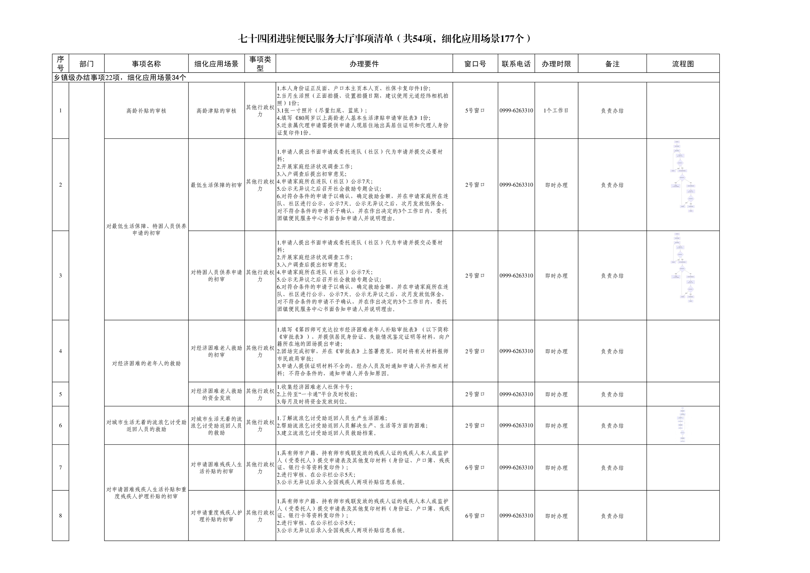 七十四团进驻便民服务大厅事项清单