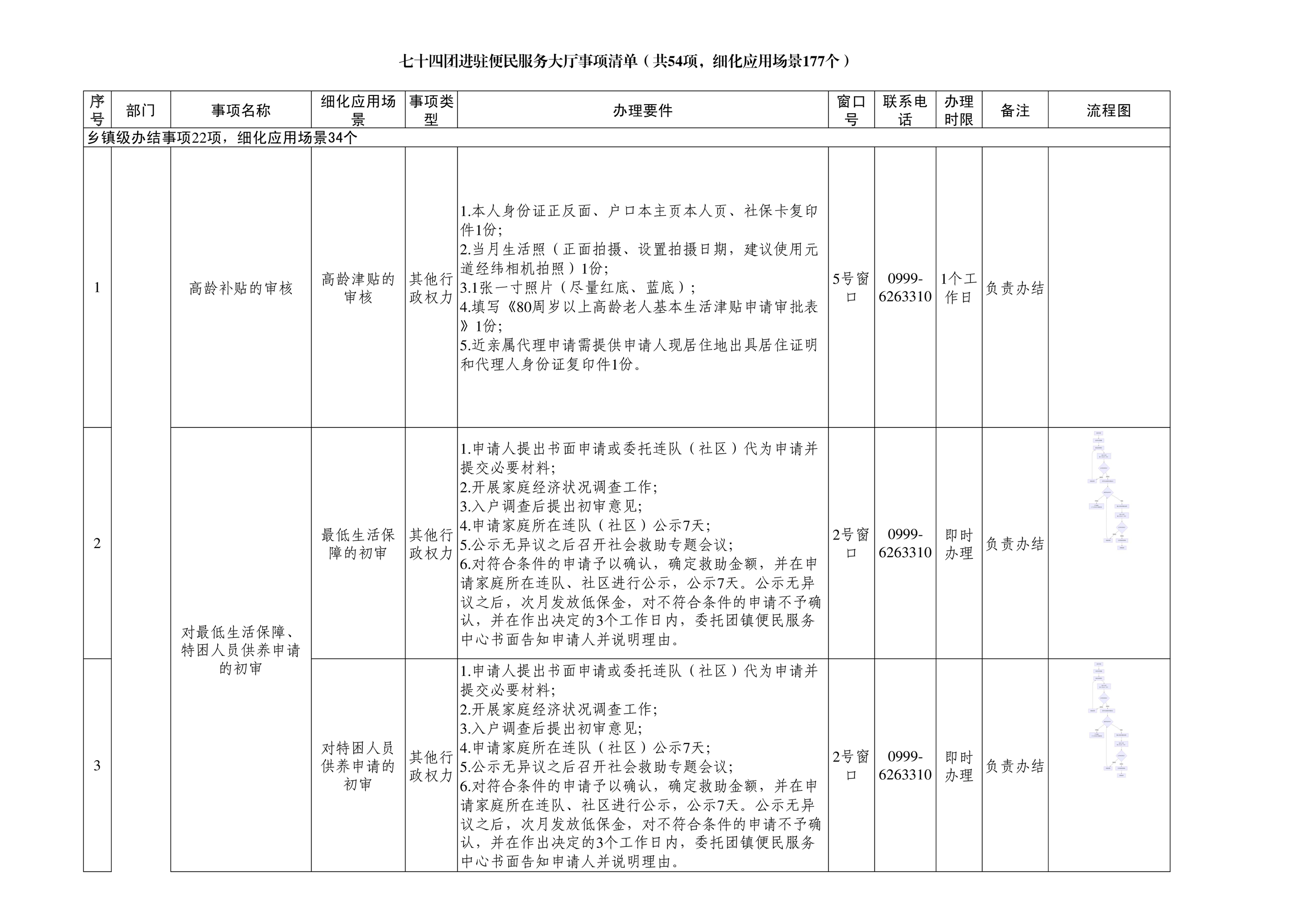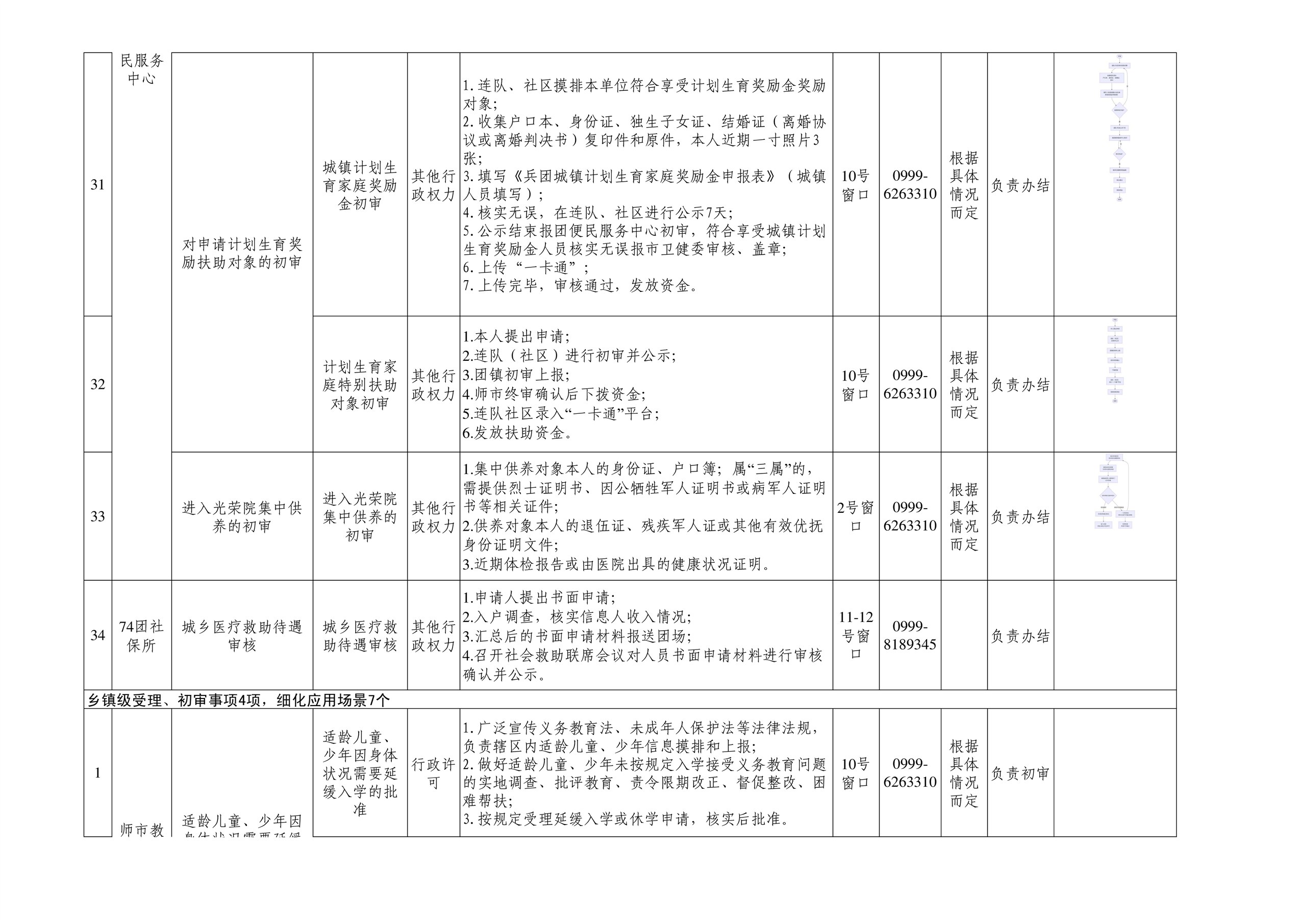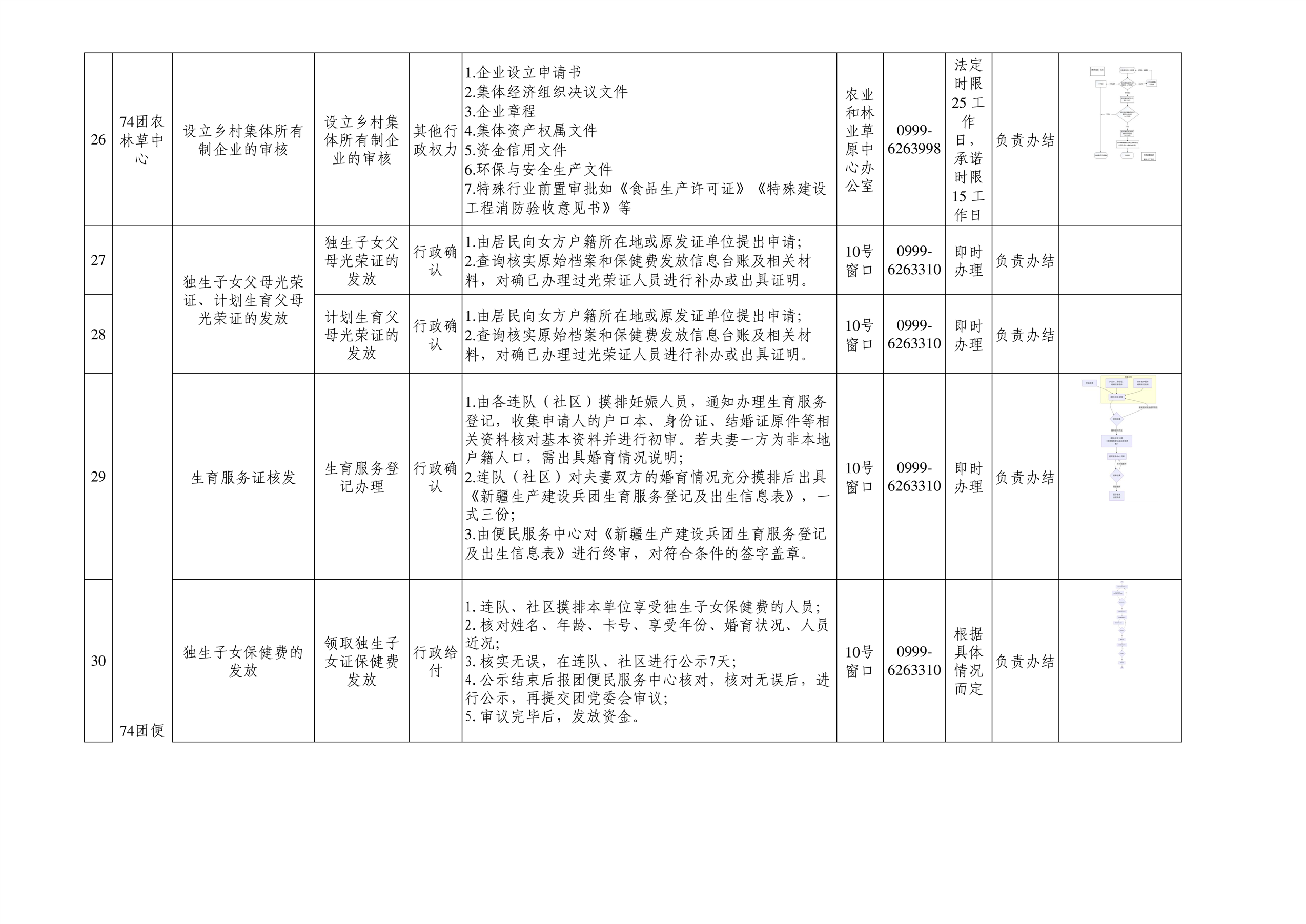 七十四团进驻便民服务大厅事项清单