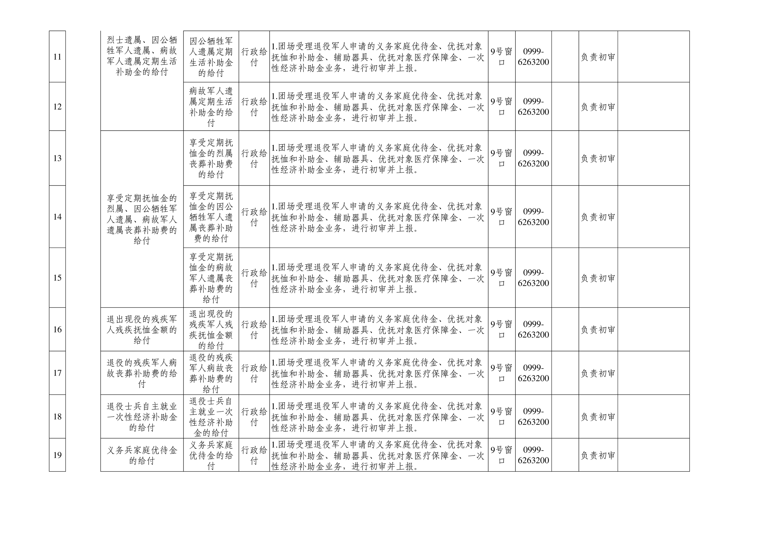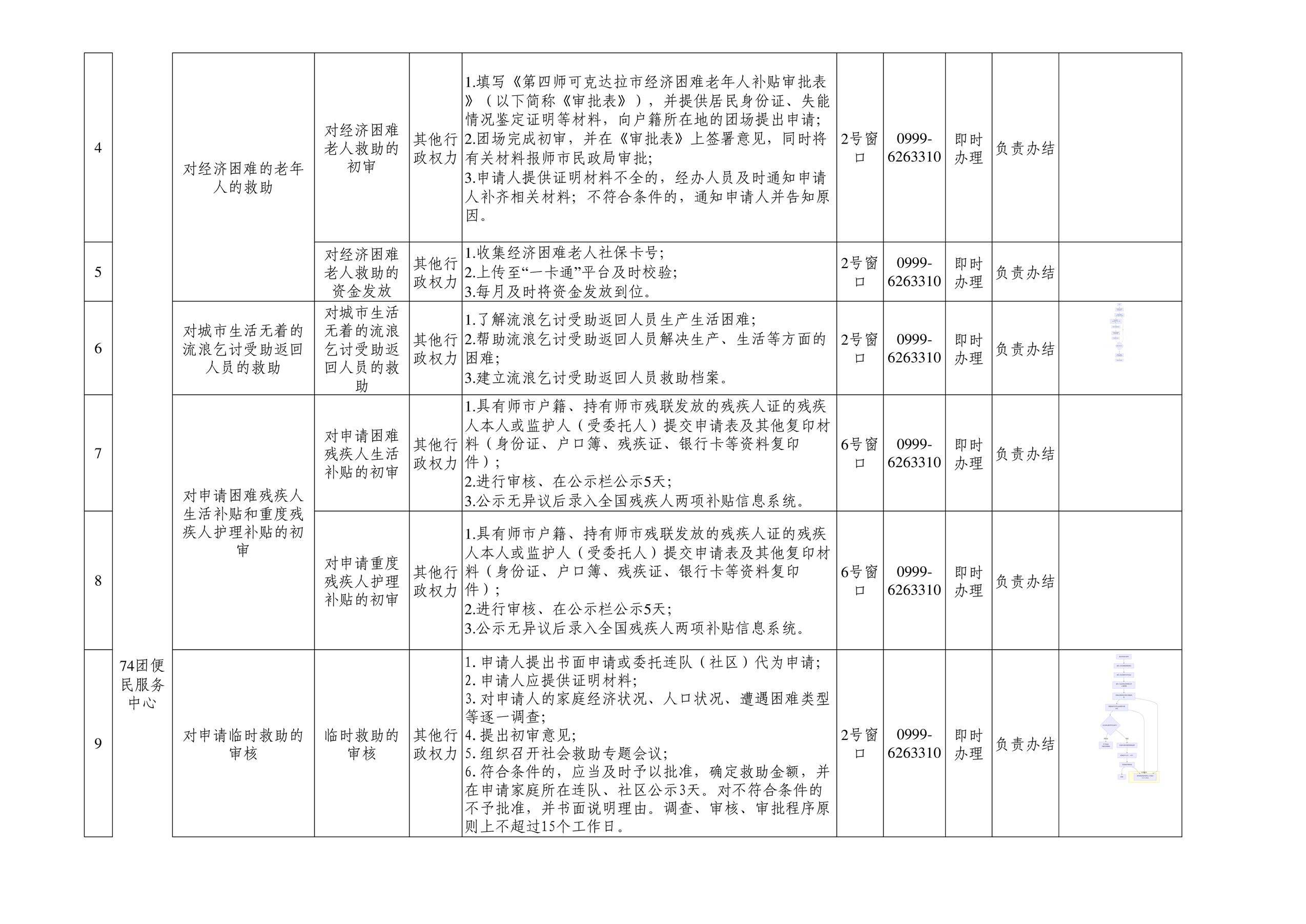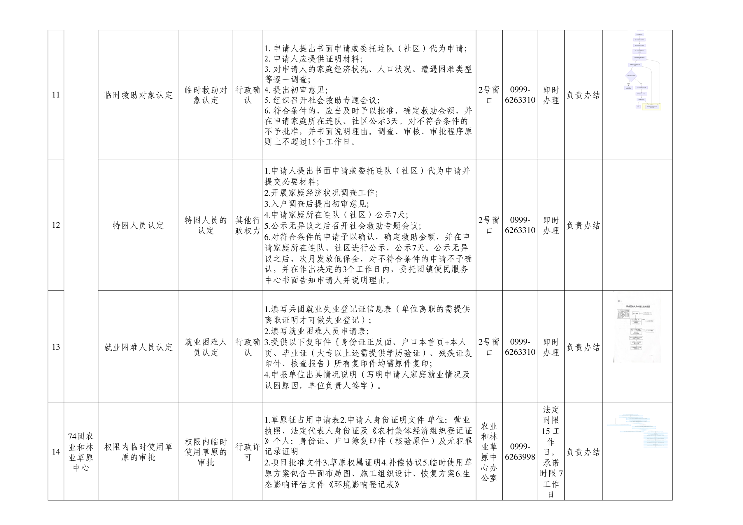 七十四团进驻便民服务大厅事项清单
