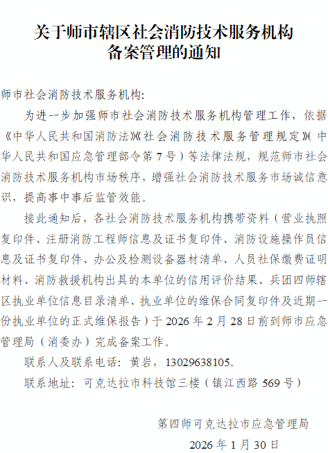 关于师市辖区社会消防技术服务机构备案管理的通知