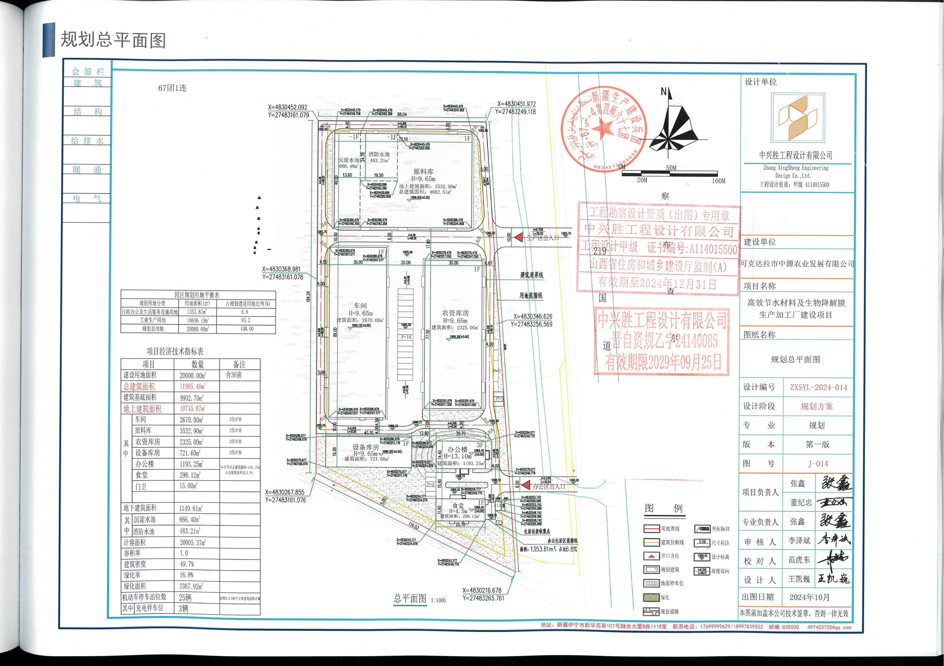 项目名称:可克达拉市中源农业发展有限公司高效节水材料及生物降解膜生产加工厂建设项目