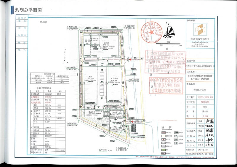 建筑规模:新建原料库建筑面积4682.51平方米(地上3532.9平方米,地下1149.61平方米),地上1层,地下一层,地上高度8.15米(至檐口);新建车间建筑面积2670平方米,地上1层,地上高度8.15米(至檐口);新建农资库房建筑面积2325平方米,地上1层,地上高度8.15米(至檐口);新建设备库房建筑面积721.6平方米,地上1层,地上高度8米(至檐口);新建办公楼建筑面积1193.25平方米,地上3层(局部4层),地上高度15.6米;新建食堂建筑面积298.12平方米,地上1层,地上高度4.5米;新建门卫室建筑面积15平方米,地上1层,地上高度3.75米。