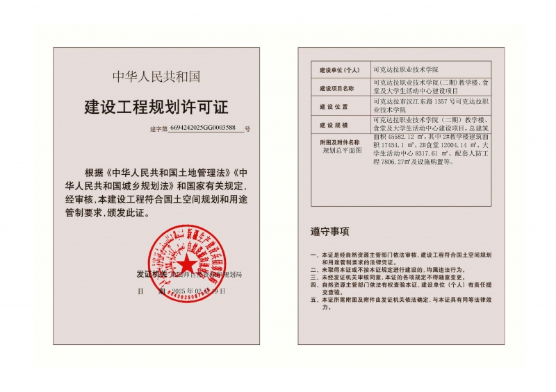 项目名称:可克达拉职业技术学院(二期)教学楼、食堂及大学生活动中心建设项目