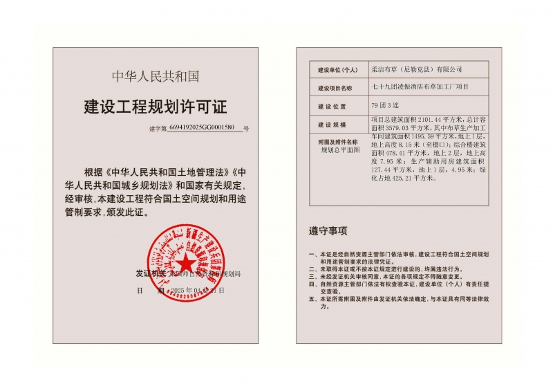 建设单位:柔洁布草(尼勒克县)有限公司