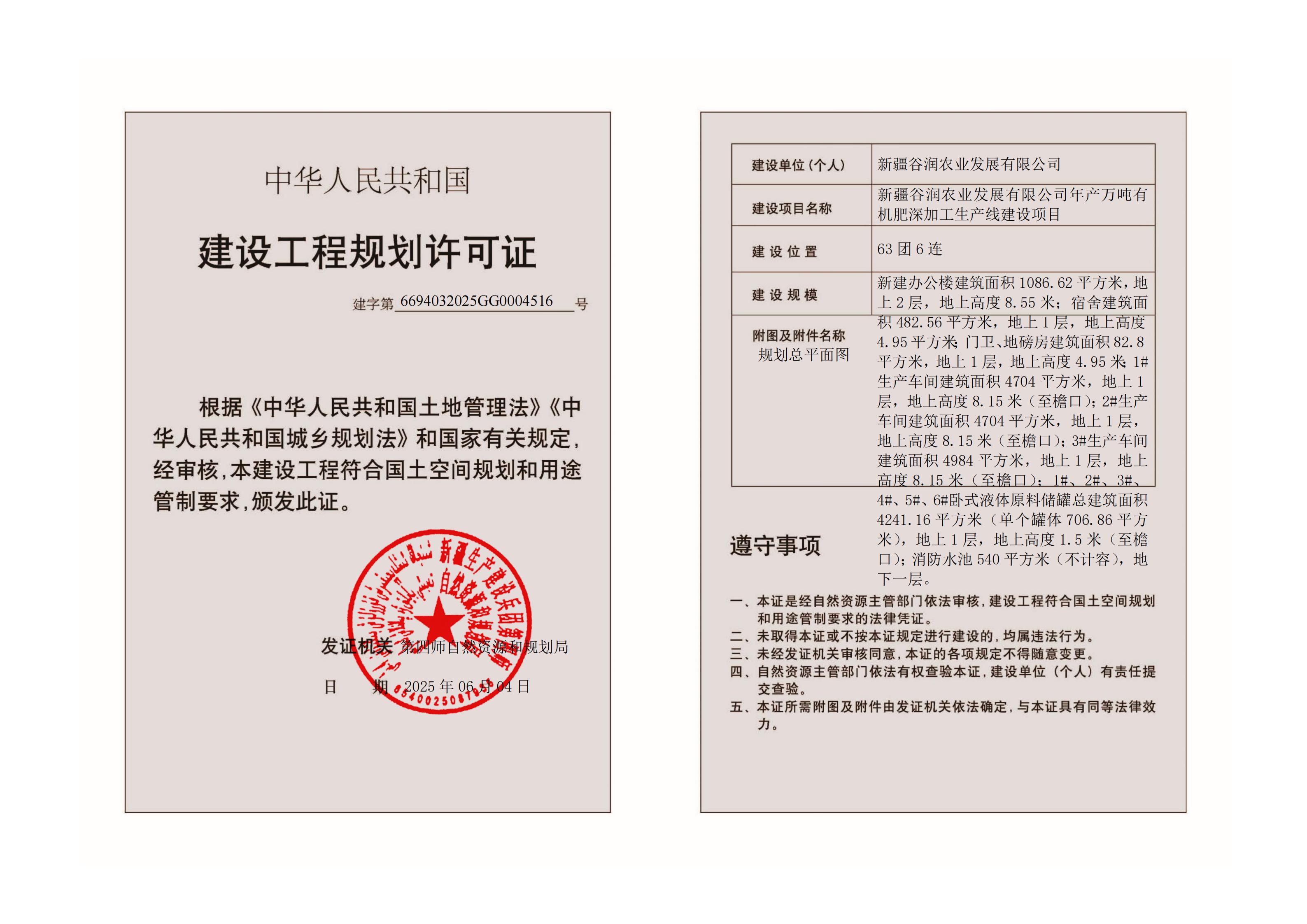 项目名称:新疆谷润农业发展有限公司年产万吨有机肥深加工生产线建设项目