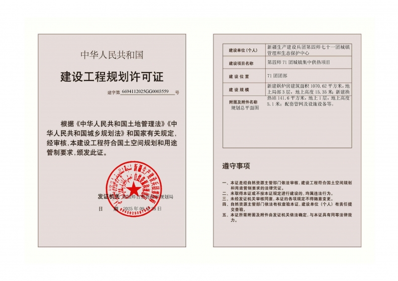 建设单位:新疆生产建设兵团第四师七十一团城镇管理和生态保护中心