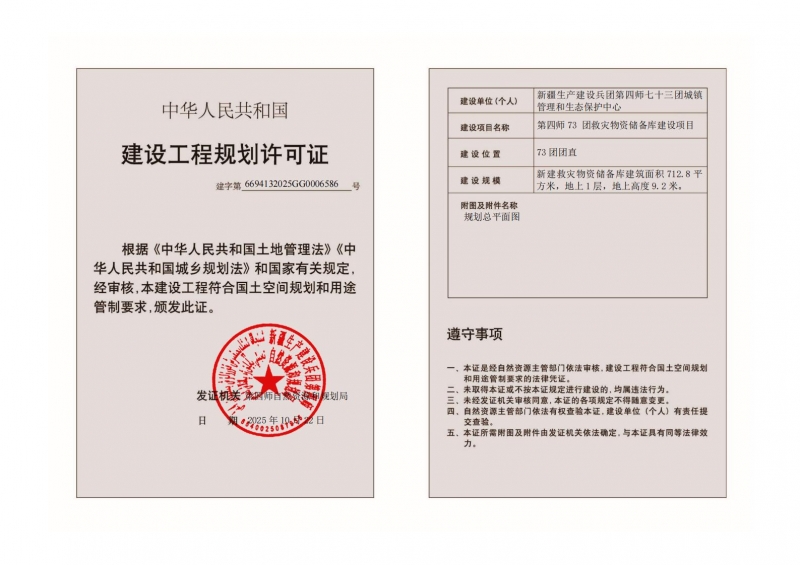 项目名称:第四师73团救灾物资储备库建设项目