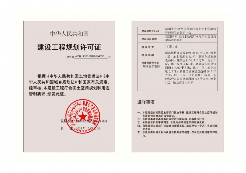 建设单位:新疆生产建设兵团第四师七十七团城镇管理和生态保护中心