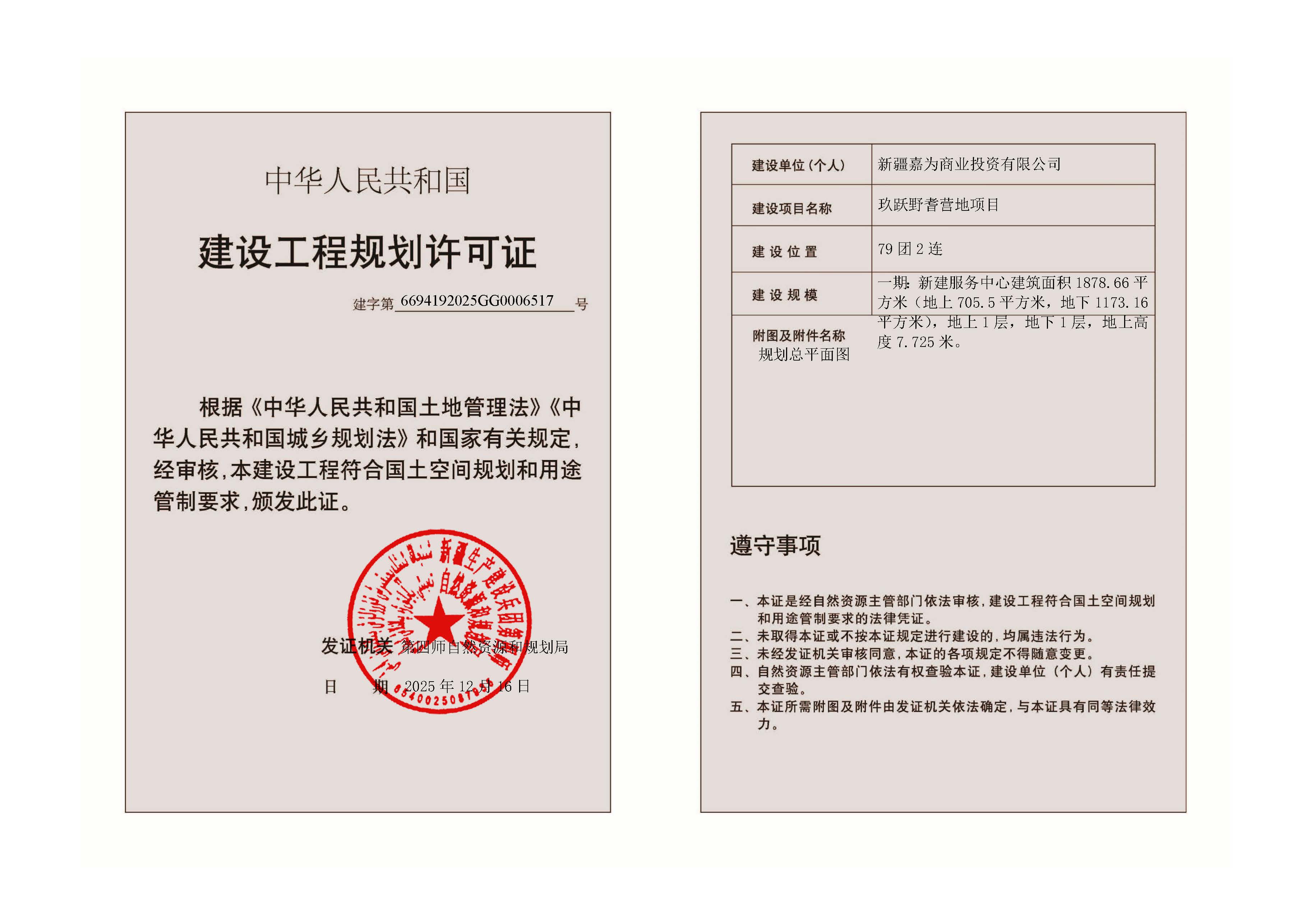 公示日期:2025年12月24日至规划竣工验收