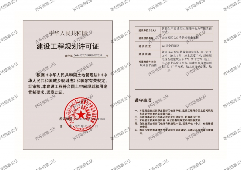 公示日期:2026年3月5日至建设工程土地核验与规划核实合格为止