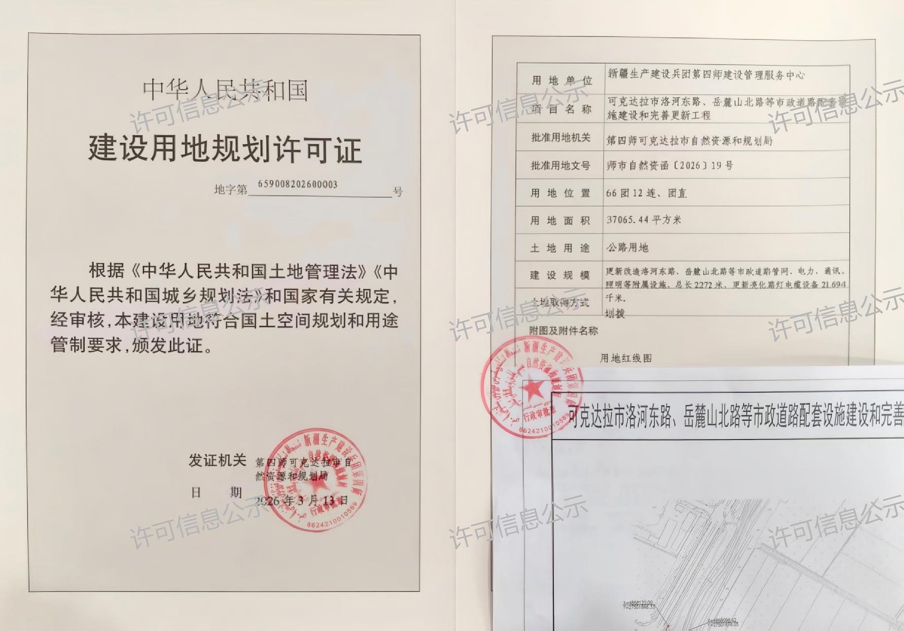 项目名称:可克达拉市洛河东路、岳麓山北路等市政道路配套设施建设和完善更新工程