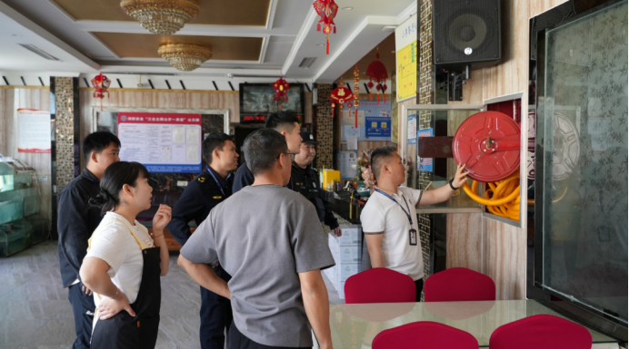 检查组实地查看了辖区内餐饮场所及酒店、网吧等文旅市场,对其经营许可证是否齐全、安全制度是否落实、安全通道是否畅通、消防器材及应急照明设备是否配备完好等方面进行了全面细致地检查。同时要求经营主体要压实消防安全责任,切实做好消防安全排查,重点关注重点部位、重点场所,及时消除安全隐患,杜绝各类安全事故的发生。