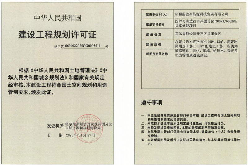 四师可克达拉市兵团分区300MW/600MWh 共享储能项目规划许可证批后公告说明
