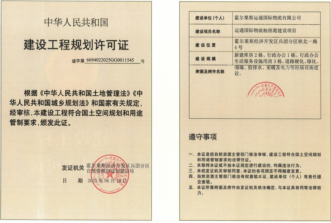 用地位置:霍尔果斯经济开发区兵团分区