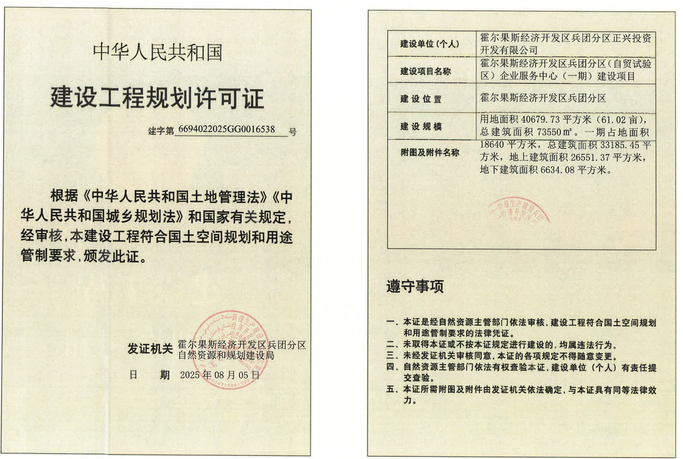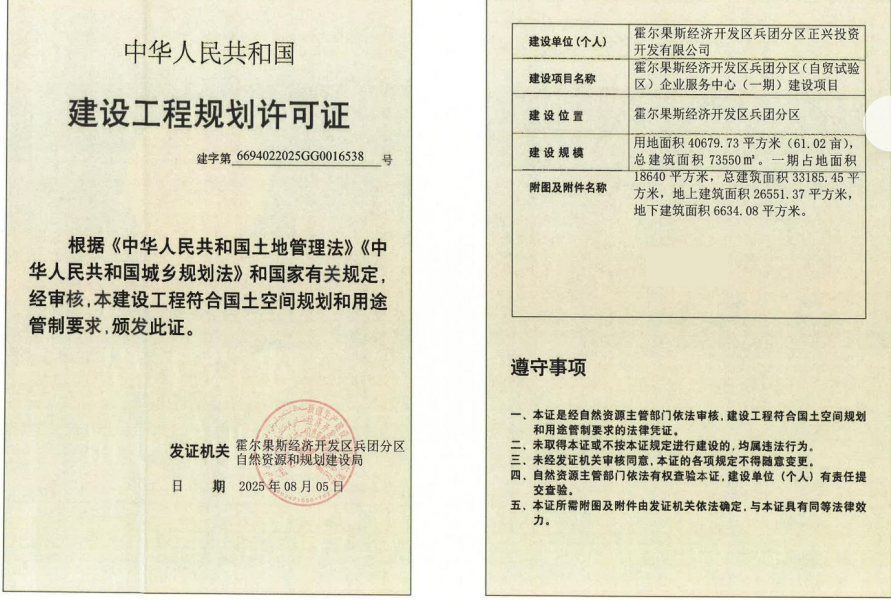 霍尔果斯经济开发区兵团分区(自贸试验区)企业服务中心(一期)建设项目规划许可证批后公告说明