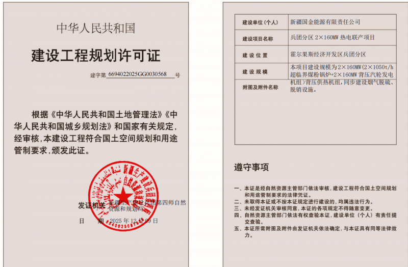 项目名称:兵团分区2×160MW热电联产项目