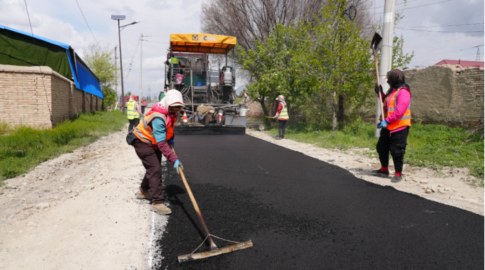 “以前出门两脚泥,开车颠簸得像‘蹦迪’。现在柏油路修到家门口,心里敞亮多了!”看着正在铺设的柏油路面,六十二团一连的居民们感慨万千。