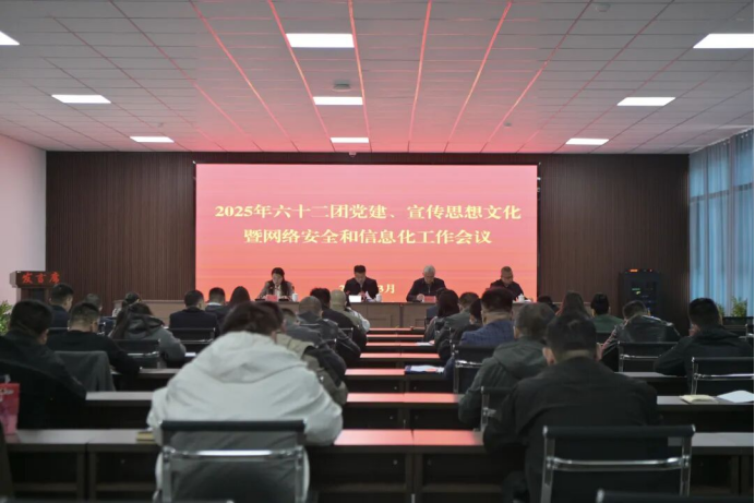 3月28日,六十二团在便民服务中心三楼会议室召开2025年党建、宣传思想文化暨网络安全和信息化工作会议。团党委书记、政委杨坤出席会议并讲话,团党委常委、副政委张越主持会议。