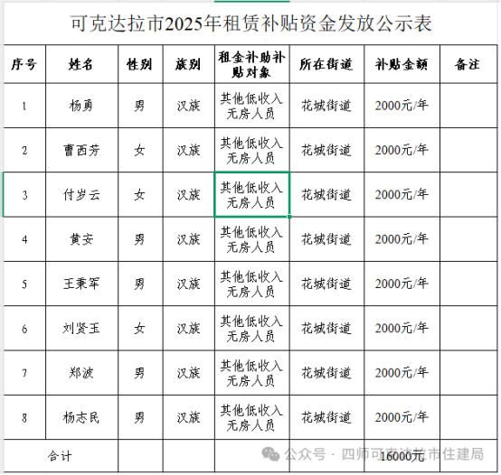 关于发放可克达拉市2025年度住房租赁补贴的公示